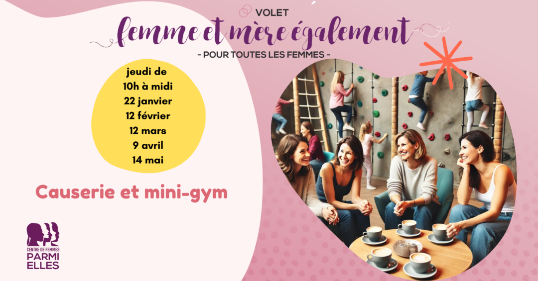 Dans l’esprit de la mission féministe de notre centre, nous vous invitons à une causerie au mini-gym, avec vos enfants. Cet espace se veut un lieu sécuritaire et inclusif où les mères peuvent se rassembler, prendre la parole et se soutenir mutuellement.